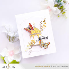 The die set includes a layered bird cage and a branch to complement the butterflies. There are 2 dies in this set.