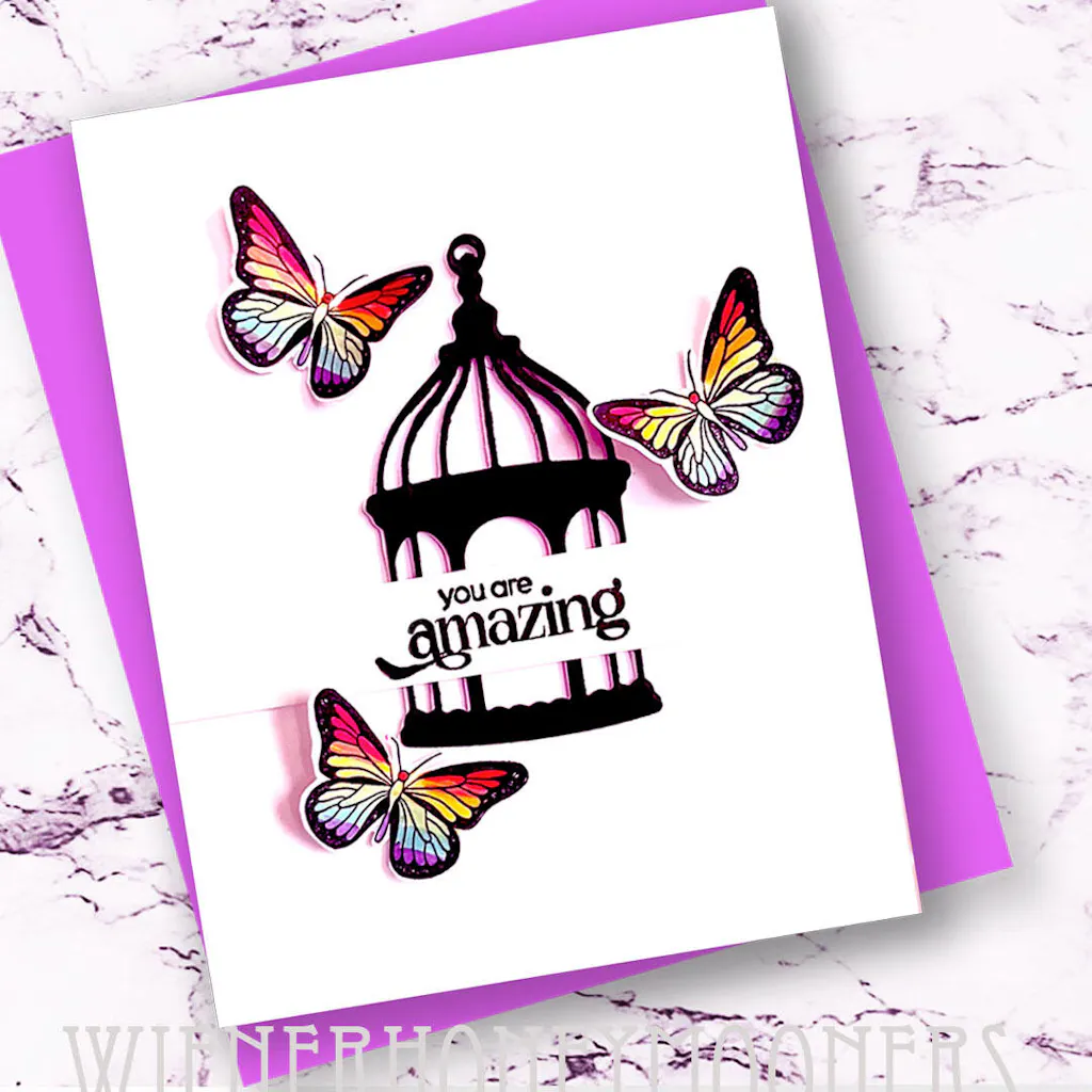FABULOUS fun and easy to use layering butterfly set and awesome birdcage die with bonus sprig die.