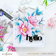 I was inspired to purchase Charming Delight because of a Jennifer McGuire video in which she used this set with interference inks. It was so gorgeous and I immediately added the set to my Wish List. Stencils have become one of my favorite things to play with. It takes the guesswork out of how to color, yet still allows a lot of choice for colors and texture. I love that Altenew is adding more layers to the stencil sets; it just makes the flowers look more and more real. So glad this set is now in my possession!