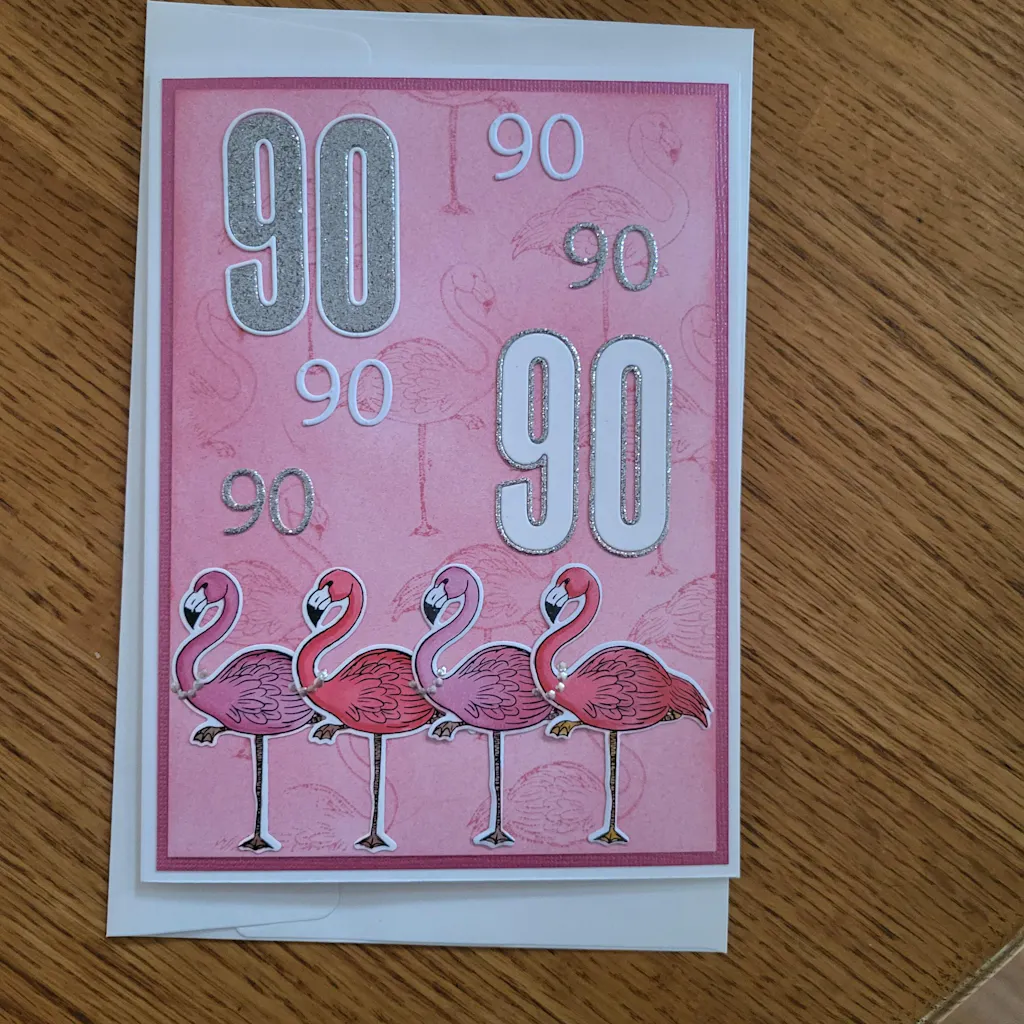 I love this stamp and die. I had a commission to make a card for a 90th birthday, with the qualification that it needed to have a pink flamingo. Altenew to the rescue!! The stamp is nice and clear and was easy to colour with my alcohol markers and the die cut it out super easily. I did add a little pearl necklace on them :)