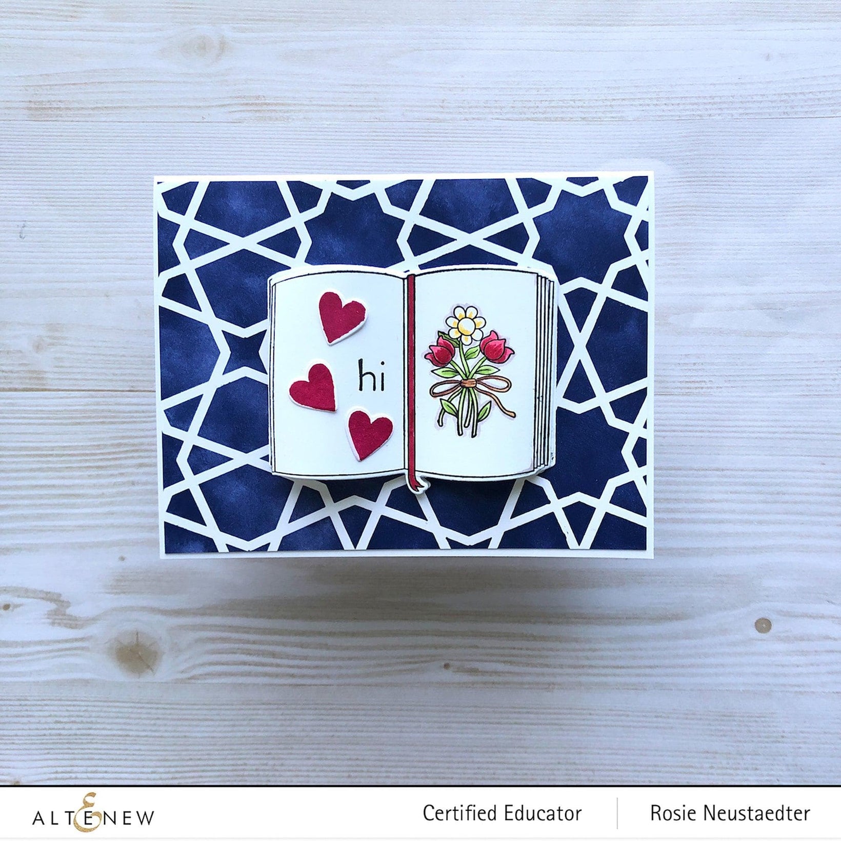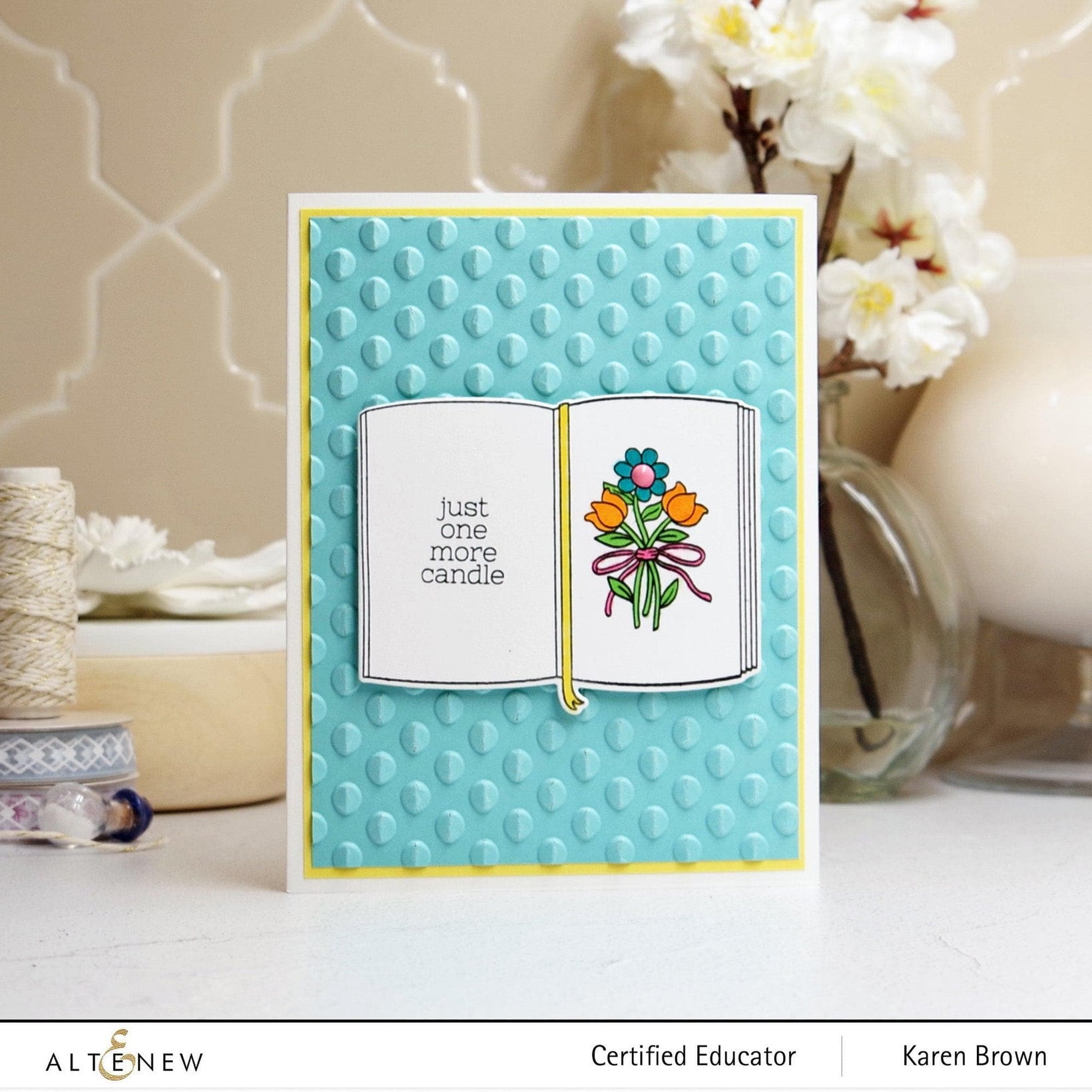 Designer's Tips: Emboss your cardstock with a floral or patterned 3D embossing folder. Stamp the journal onto a separate piece of white cardstock, die cut the image, and color it using Altenew's Artist Alcohol Markers.