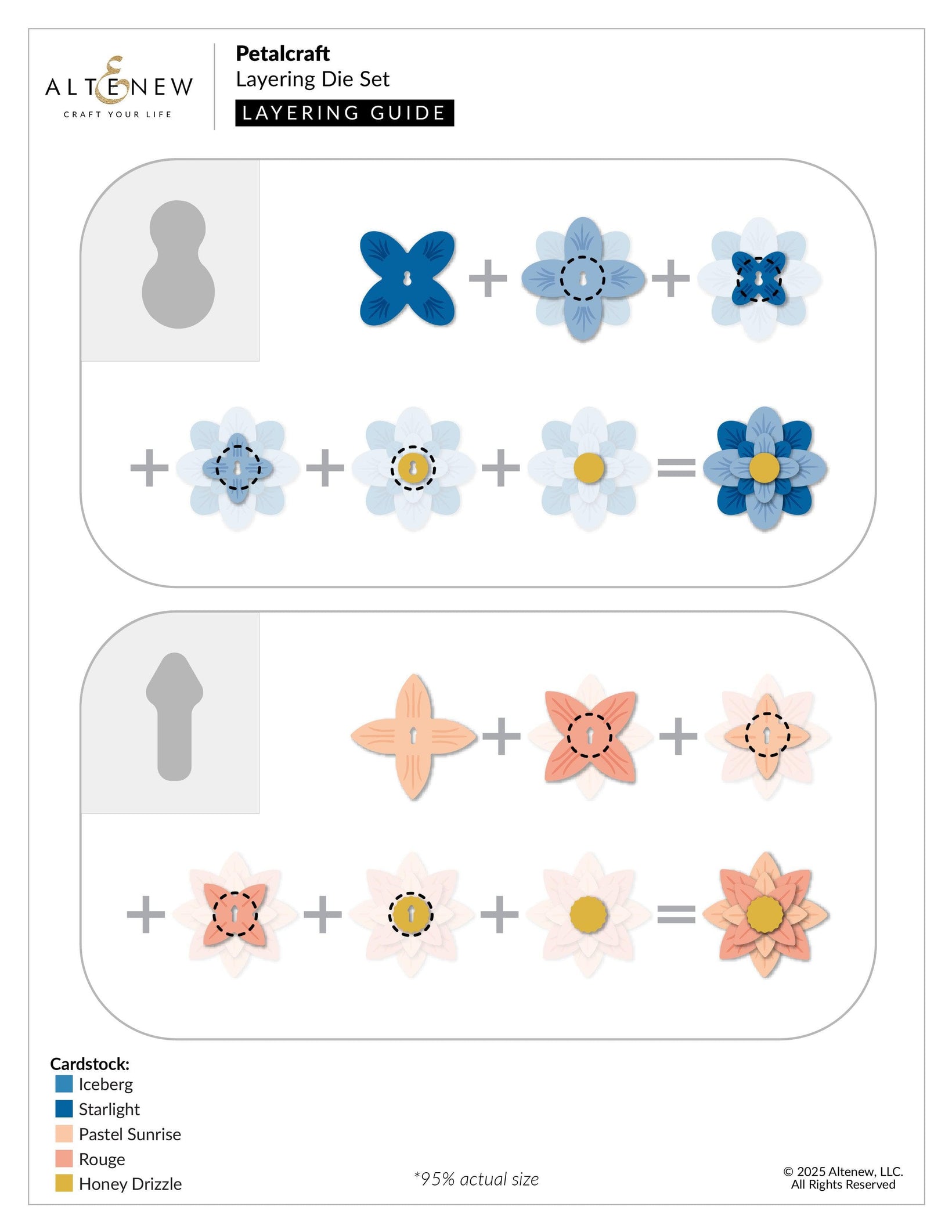 The Petalcraft Layering Die Set includes two adorable floral dies designed to layer over the floral emblems of the Botanical Rails 3D Embossing Folder. These dies can be easily assembled and arranged around your card front to create a charming display of whimsical flowers.