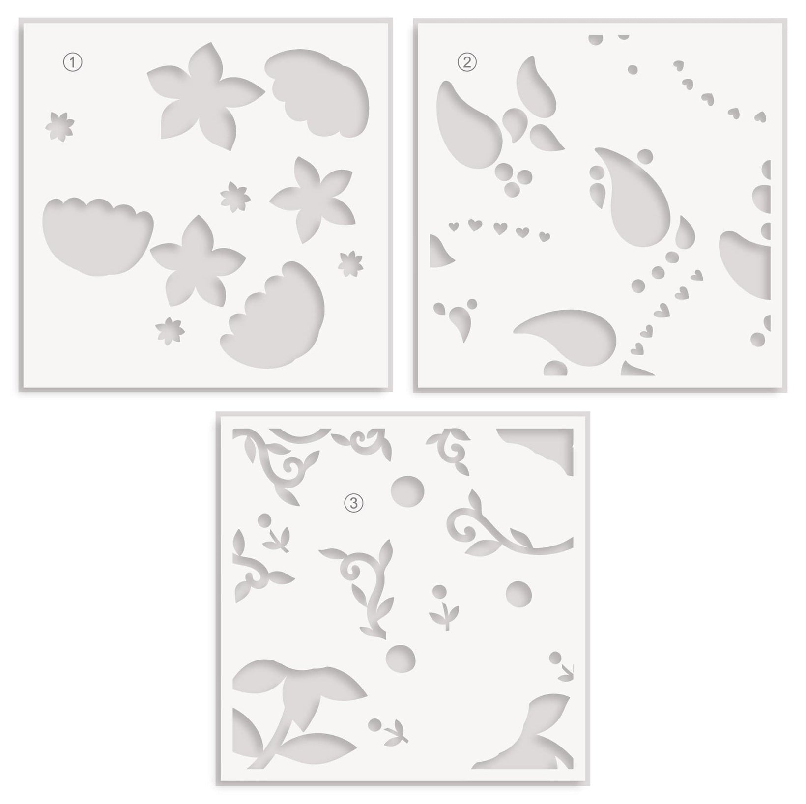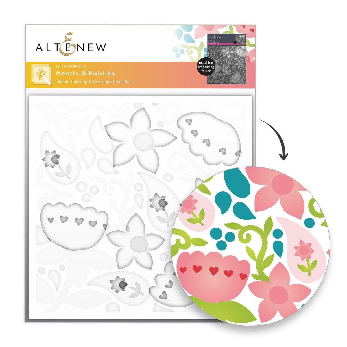 Enhance the Hearts & Paislies 3D Embossing Folder with the Hearts & Paislies Stencil Set (3 in 1). These stencils bring vibrant color to petals, leaves, paislies, and hearts. Create enchanting, whimsical designs using the stencil set alone.