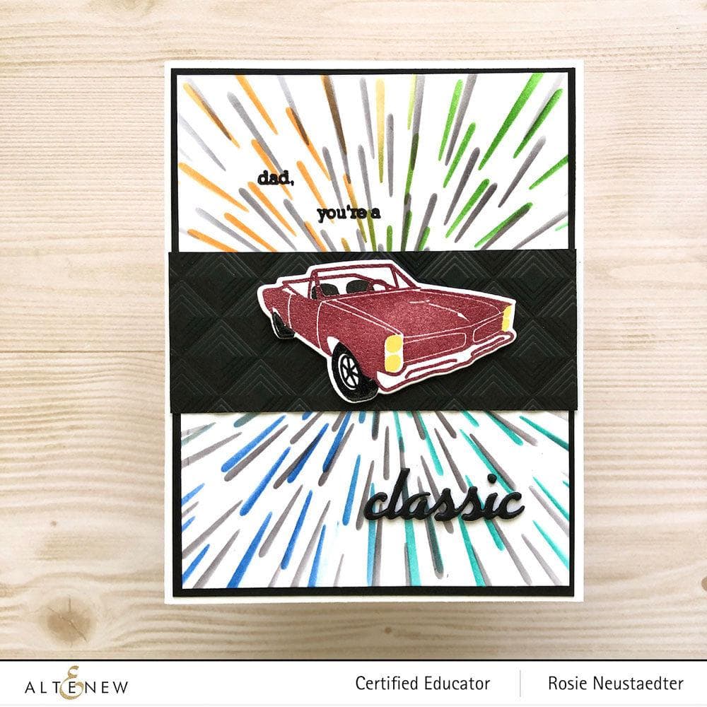 Featuring a fun retro convertible, this mini stamp set would make the perfect addition to Father's Day cards, birthday gifts, and more! Stamp each layer in a different color for a bold look that pops. The coordinating die set allows you to cut out the car with ease, as well as the word "classic" that you can pair with the stamped sentiments.