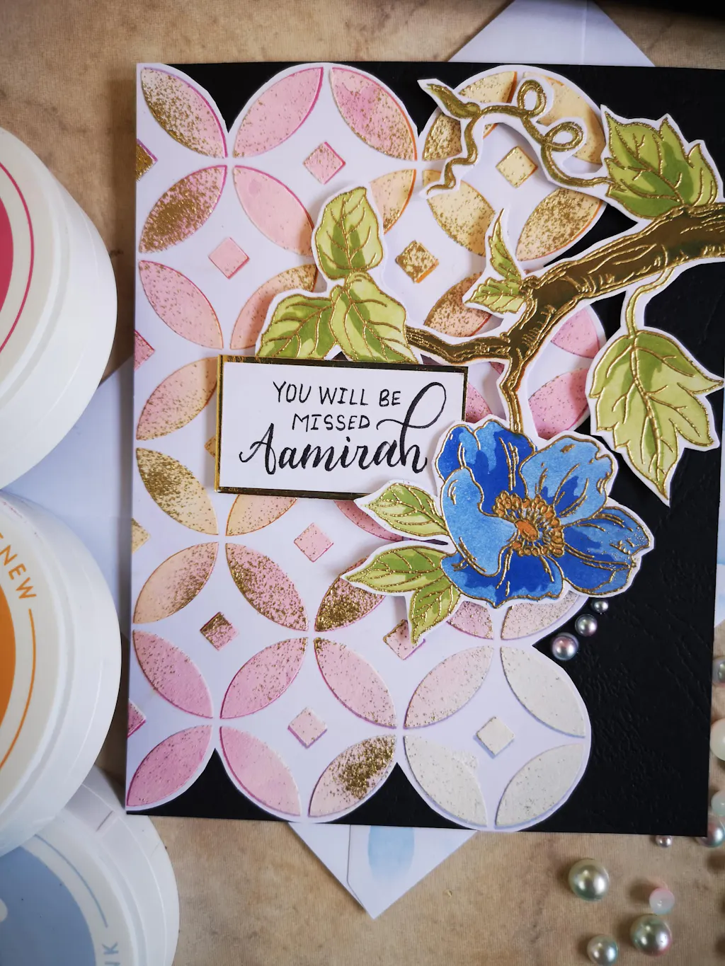 Such a beautiful stencil, used it with embossing paste and i have fussy cut around the circles. such a unique and beautiful look.
