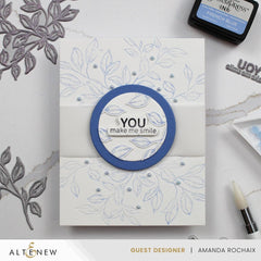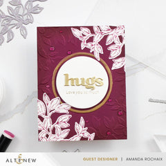 The Rustling Leaves Press Plate Set features two intricate leaf branches to create captivating focal points, elegant backgrounds, or even frames. It also includes four warm heartfelt sentiments to touch your loved ones.