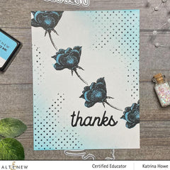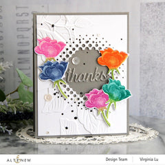 Enjoy clever one-step stamping for a shaded look on these beautiful flowers. The stippled bud design is amazing on its own, or you can layer it with the additional stamps included in the set. A large cursive "thanks" is also included as a special sentiment for your cards.