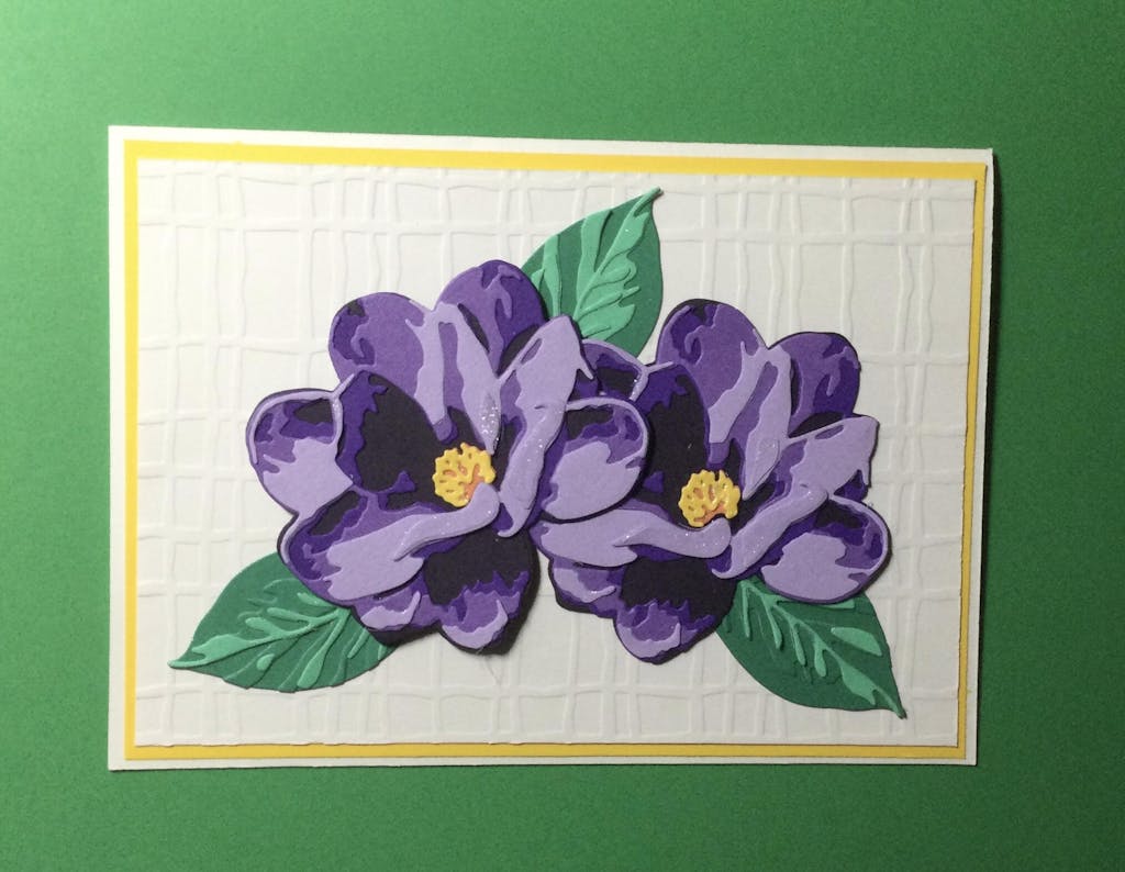 Now that I have the hang of it I will be better prepared to cut multiple flowers in different color combinations to save time. I am looking forward to having some of these flowers and leaves pre-made and ready to use on cards and packages!
