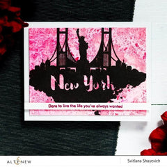 This stamp set includes a beautiful watercolor skyline image of New York and the iconic Statue of Liberty. The 21 sentiments included in this set perfectly complement the image so that you can use your creative skills in handmade projects of your choice, such as scrapbook pages, travel journals, greeting cards, or any other form of mixed media!