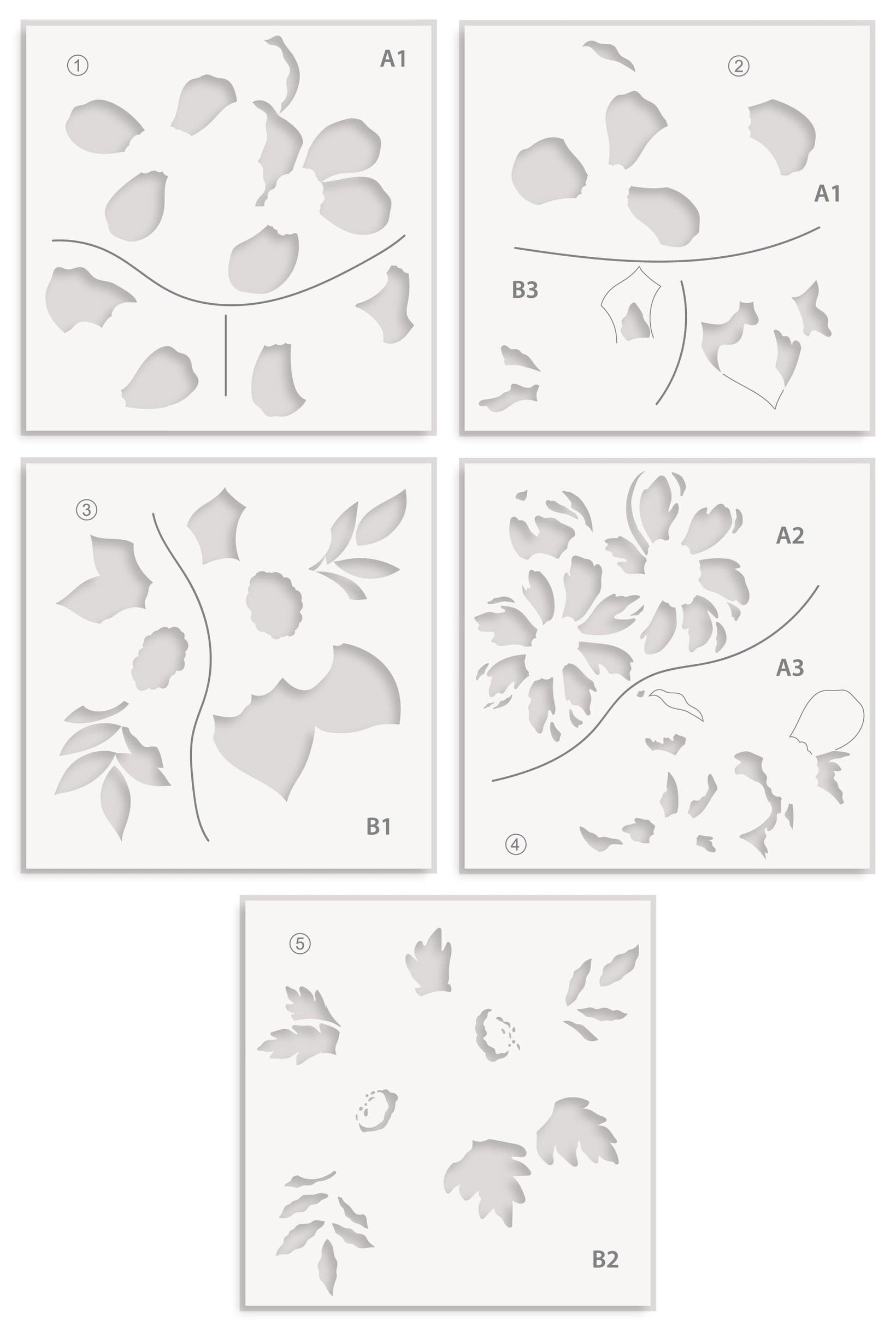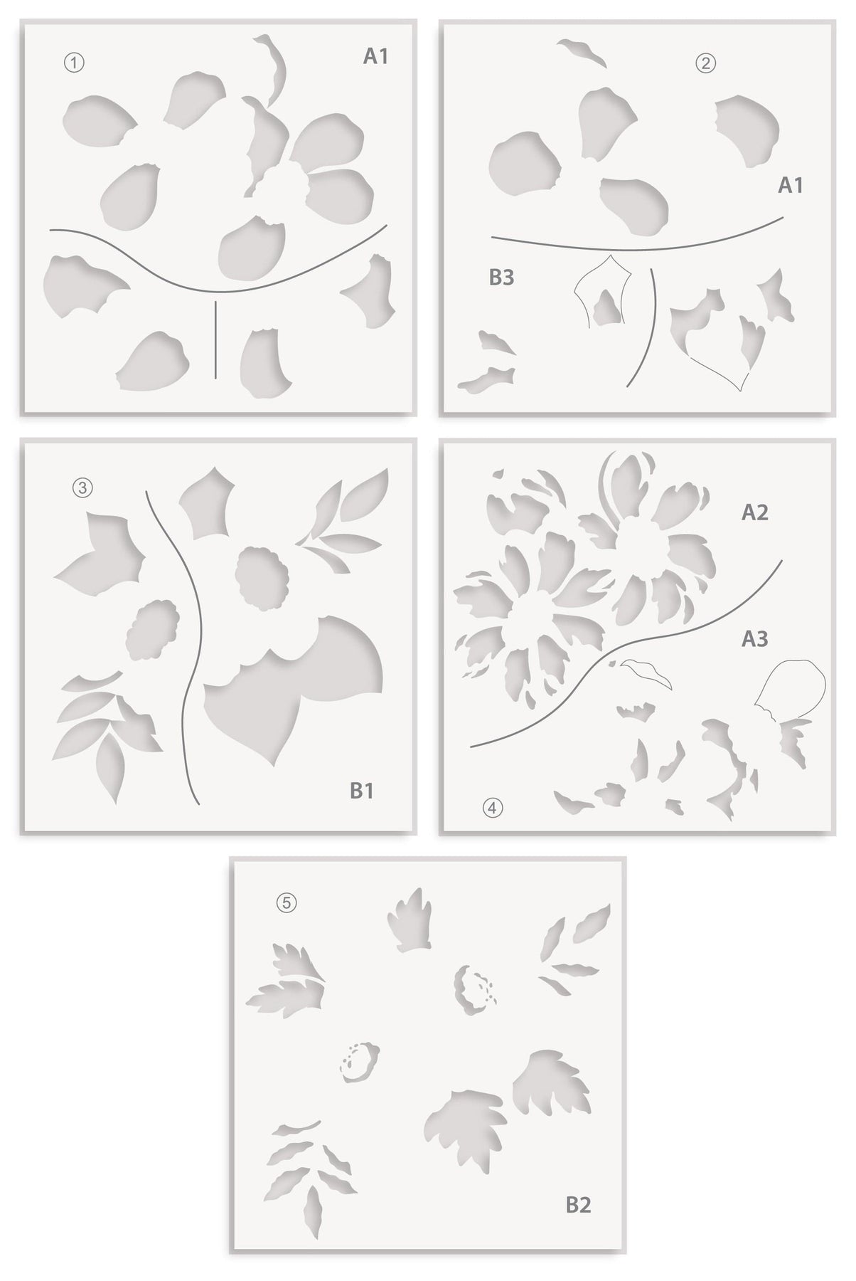 The 6"x6" Simple Botanicals Layering Stencil coordinates with both the stamp set and die set, helping you add a splash of color to the beautiful floral images. There are 5 stencils in this set.