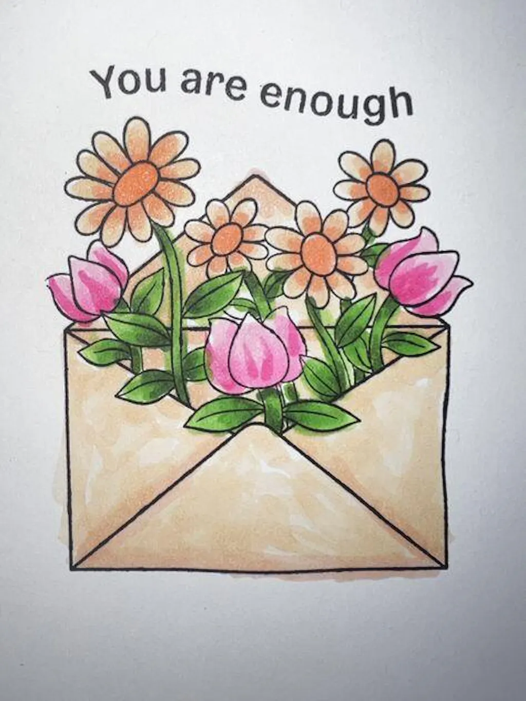 Designer's Tips: Stamp the envelope on the center of your card and color it using Altenew's Artist Alcohol Markers. Stamp one of the main sentiments on the bottom half of your card, and a complementary sentiment of your choice on the inside to give a sweet surprise to your loved one!