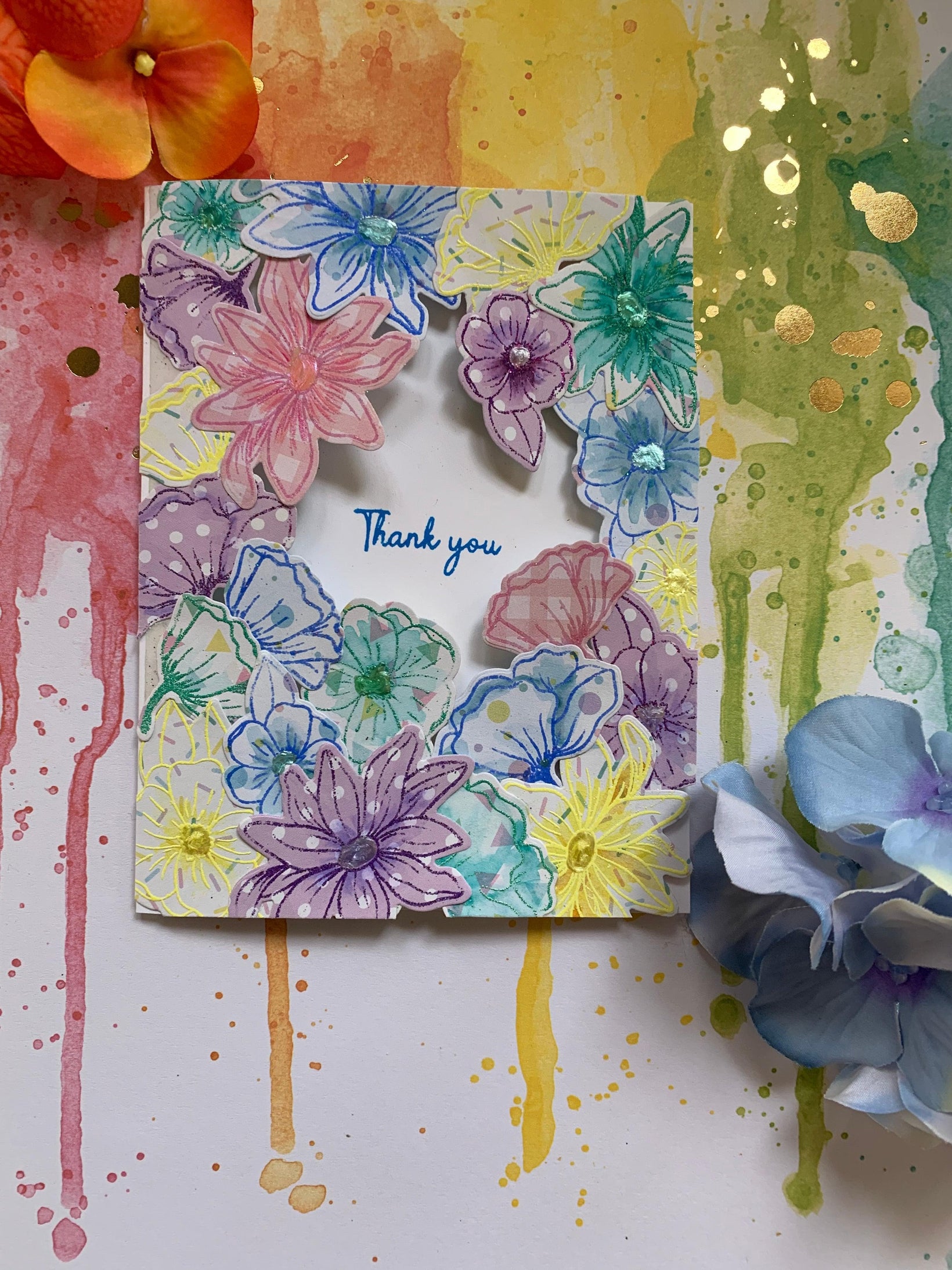 Stamp the whimsical flowers in this mini stamp set all around the background of your card to add a lovely display of wavy flowers. The stems are already colored in so you can decide your choice of ink for unique blooms. The petals were created with open spaces for the blending of colors and more.