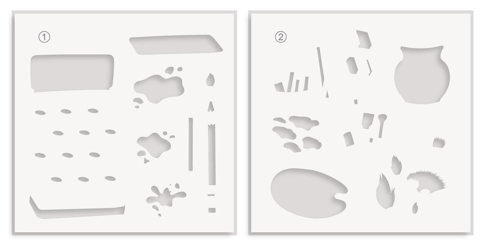 These stencils are part of our unique line of stencils curated to be used with their corresponding stamp sets. The stencils will provide a base for adding color and character to the images in the stamp set.
