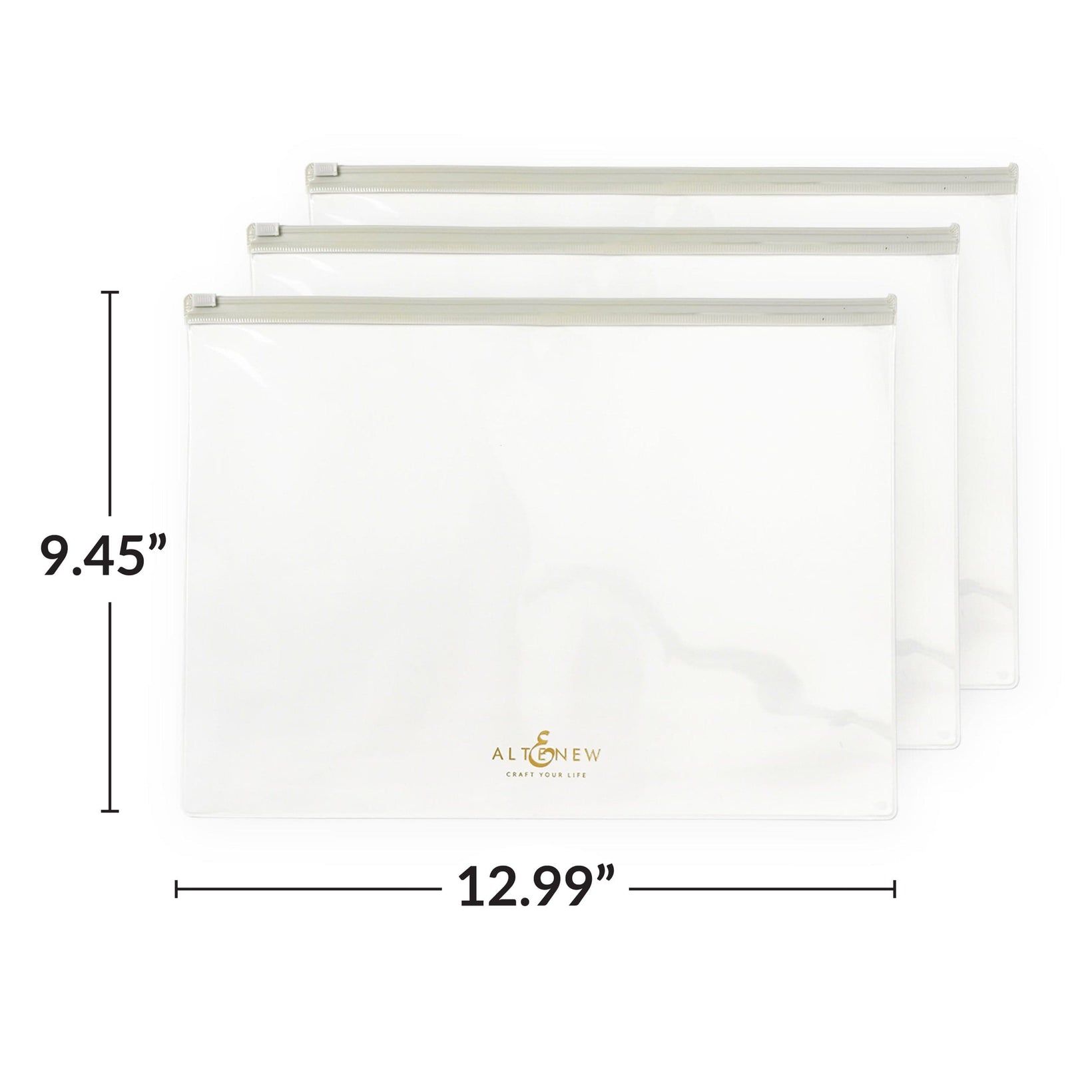 The Zip 'n' Keep pouch has a see-through front and white backing and includes a slide lock for easy access. With its sturdy, practical, and stylish design, these storage pouches are perfect for various uses, making them an essential addition to your organizational arsenal Each pouch features a gold foiled and embossed Altenew logo, making it a stylish and practical addition to your craft room. The large size accommodates ample supplies, while the slide lock ensures hassle-free opening and closing.