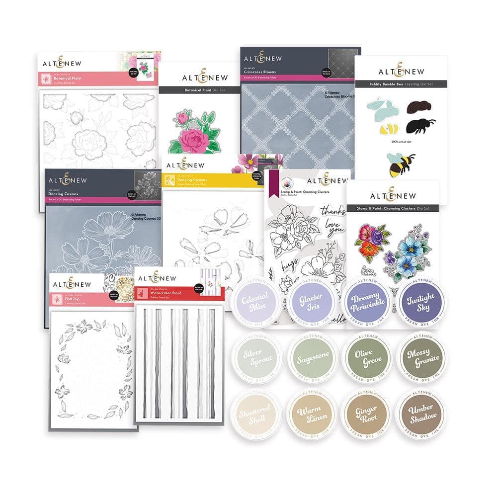 This release celebrates nature’s quiet beauty and dynamic movement. From the climbing tendrils of Build-A-Garden: Climbing Clematis to the layered elegance of Craft-A-Flower: Coral Charm Peony, each set invites you to create with depth and detail. Flourishing foliage stencils, cozy plaids, and dimensional 3D embossing folders—like Dancing Cosmos and Crisscross Blooms—offer a wide array of textures to explore. Coordinating coloring stencils and intuitive systems like Altenew’s Keyhole alignment make layering effortless. This month also introduces must-have tools and color companions: Petal Shaper Tool Set and Fresh Dye Inks, each paired with coordinating enamel dots and storage labels for easy organization. Add a refined touch to your projects with our latest wax seal stamps, and with 10 brand-new wax bead colors, there’s even more room to personalize your handmade envelopes, journals, and keepsakes.