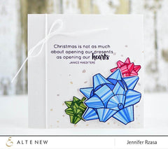 How cleaver of Altenew to develop a one stop stamp shop for your holidays cards. These cuties can be used as the main focal point of your card sentiment; better yet, so many are 100% perfect for the message inside. Let's face it often times we simply do not have the time to jot a long message inside the card; yet, we do wish to express our heartfelt holiday wishes. I am certain I will use many of the sentiments this year and many years to come. I do recommend this stamp set.