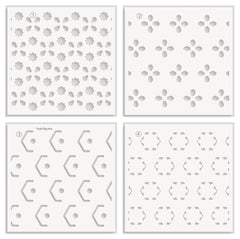 The Botanical Honeycomb Simple Coloring Stencil Set is the perfect tool to efficiently color in the Botanical Honeycomb 3D Embossing Folder. Stencils 1 and 2 color the flower petals, Stencil 3 colors the honeycomb border and the pistils, and Stencil 4 fills the little corners behind the big flowers.