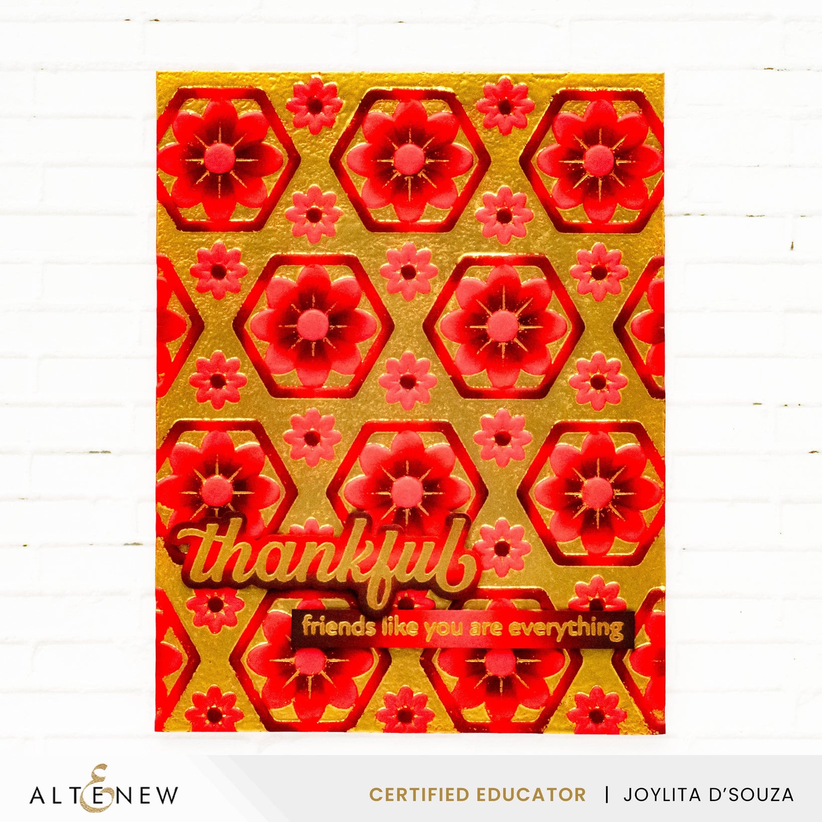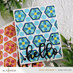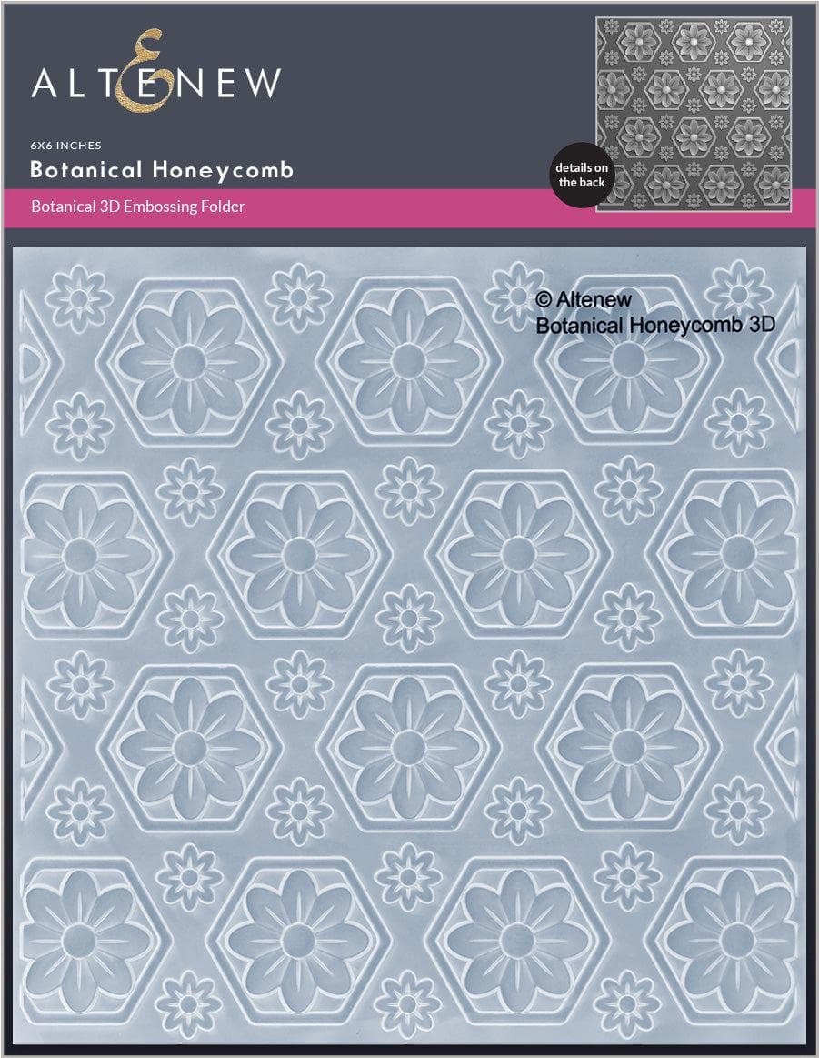 Create an intricate & stunning background for your paper crafting projects with the Botanical Honeycomb 3D Embossing Folder! This embossing folder displays a pattern of honeycomb-like shapes that contain dainty flowers inside - which is perfect for coloring with its coordinating stencil set or by freehand coloring.