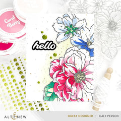 The Build-A-Garden: Blooming Delight Set showcases an arrangement of three captivating large flowers and delicate leaves, perfect for adding an enchanting touch to your projects. With two front-facing flowers, one back-facing, and a collection of versatile sentiments, you can create dynamic compositions. This set has a similar style to our Billowing Peonies Set .