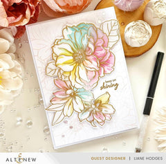 I have already had two fun sessions using these Blooming Delights - first using all of the coordinating products: stamps, dies, and stencils. I love the white spaces that are left on the petals!