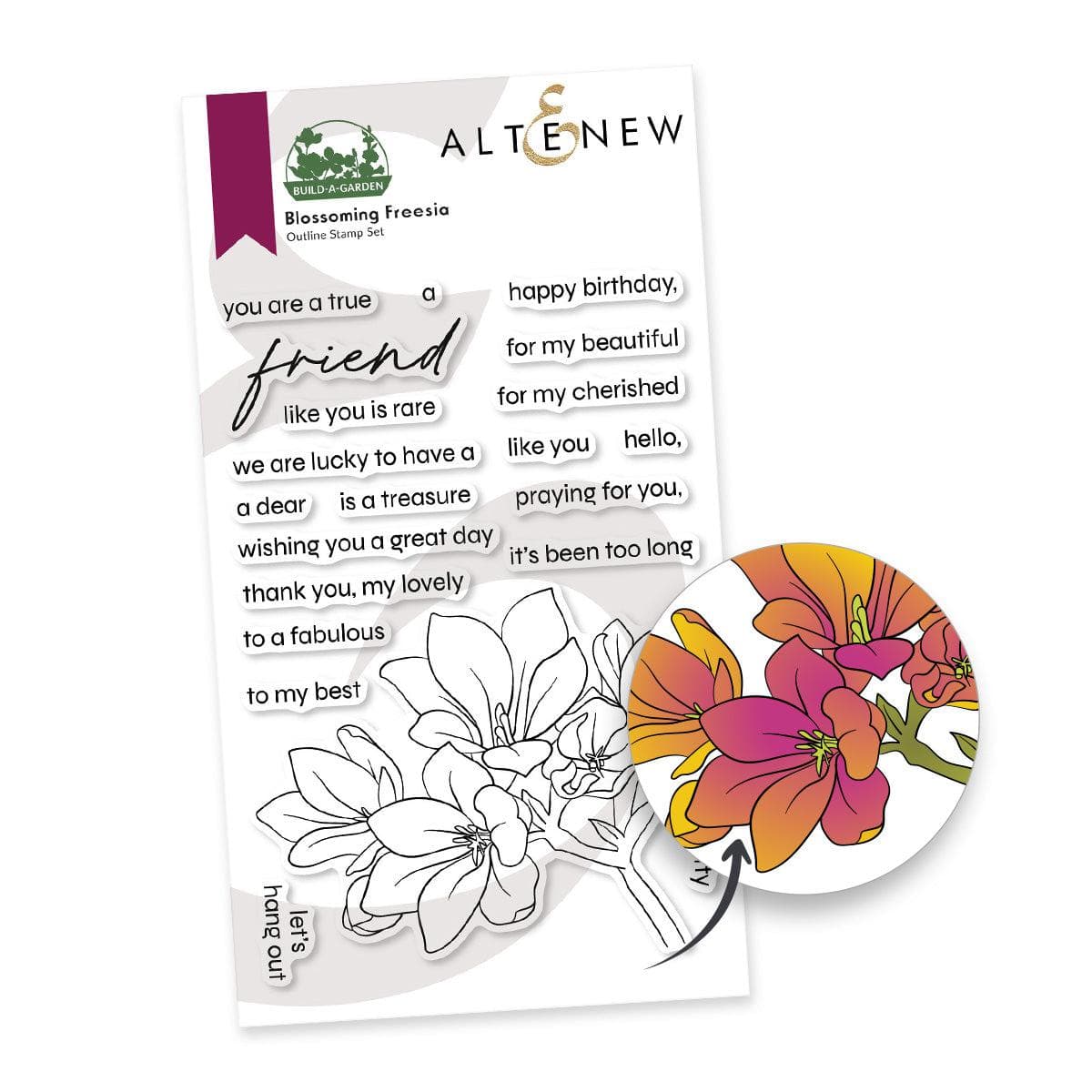 The inspiration for the Build-A-Garden: Blossoming Freesia Stamp Set comes from the symbolism of Freesia flowers, which represent friendship. It features a meticulously outlined freesia branch, highlighting delicate curves and contours of leaves and petals. It also includes friendship-themed sentiments, perfectly sized for handmade cards and DIY tags.