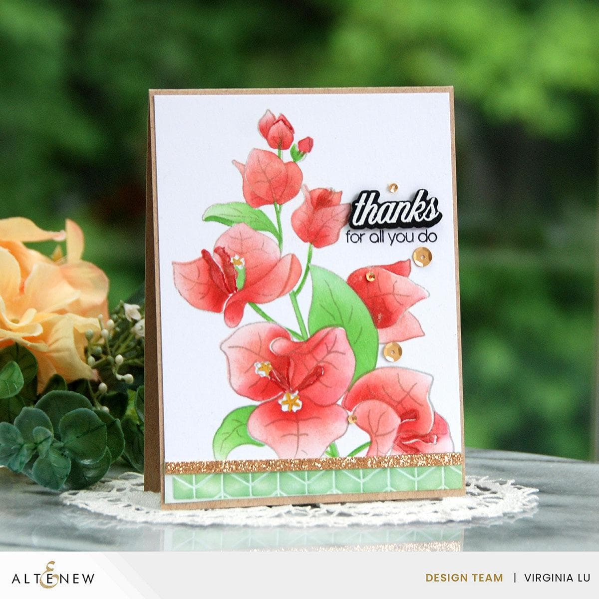 WARNING! There's way too much creative versatility with this beautiful set so don't bother putting it away! Sit, stay and play with Altenew's Build-a-Garden Bougainvillea set, a must have for your crafting arsenal!
