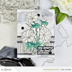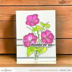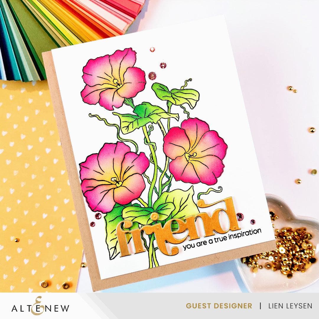 Capture the beauty of nature with Build-A-Garden: Morning Glory, a stamp set featuring three elegant morning glory flowers and leaves gracefully intertwined on a branch. Express your heartfelt emotions and share words of encouragement with the 11 included inspiring sentiments.