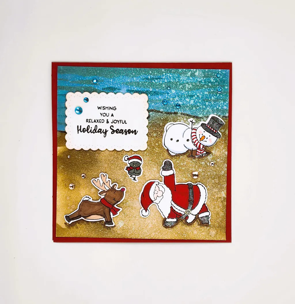 This stencil makes a perfect beach scene--especially when you add shimmer mist to it. The shimmer mist on top of the ink blending really adds the sparkle that sand and water often times have.