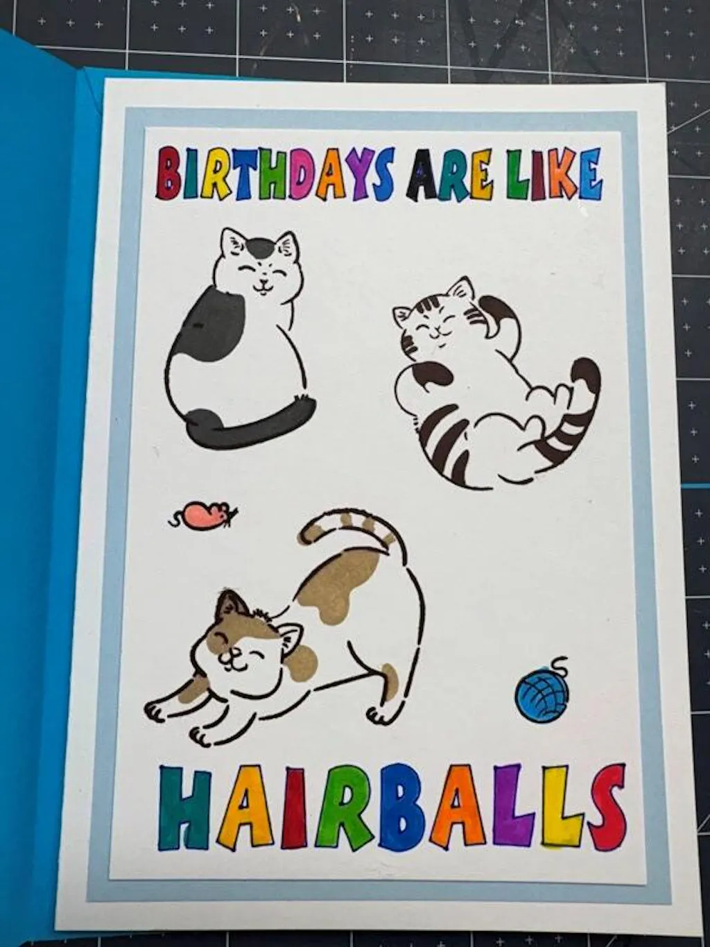 I am so glad I got this stamp & die set. I was able to make a really cute birthday card for my son. I love that you can change the colors of the cats. Highly recommend.