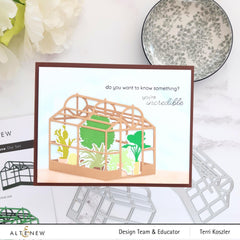 This clever die set is surely unlike anything you have seen before! The dies represent the front and back of the greenhouse - when you layer them together, you get an amazing 3D look! Want to fill your greenhouse with plants or other elements? Simply sandwich them between the two layers!