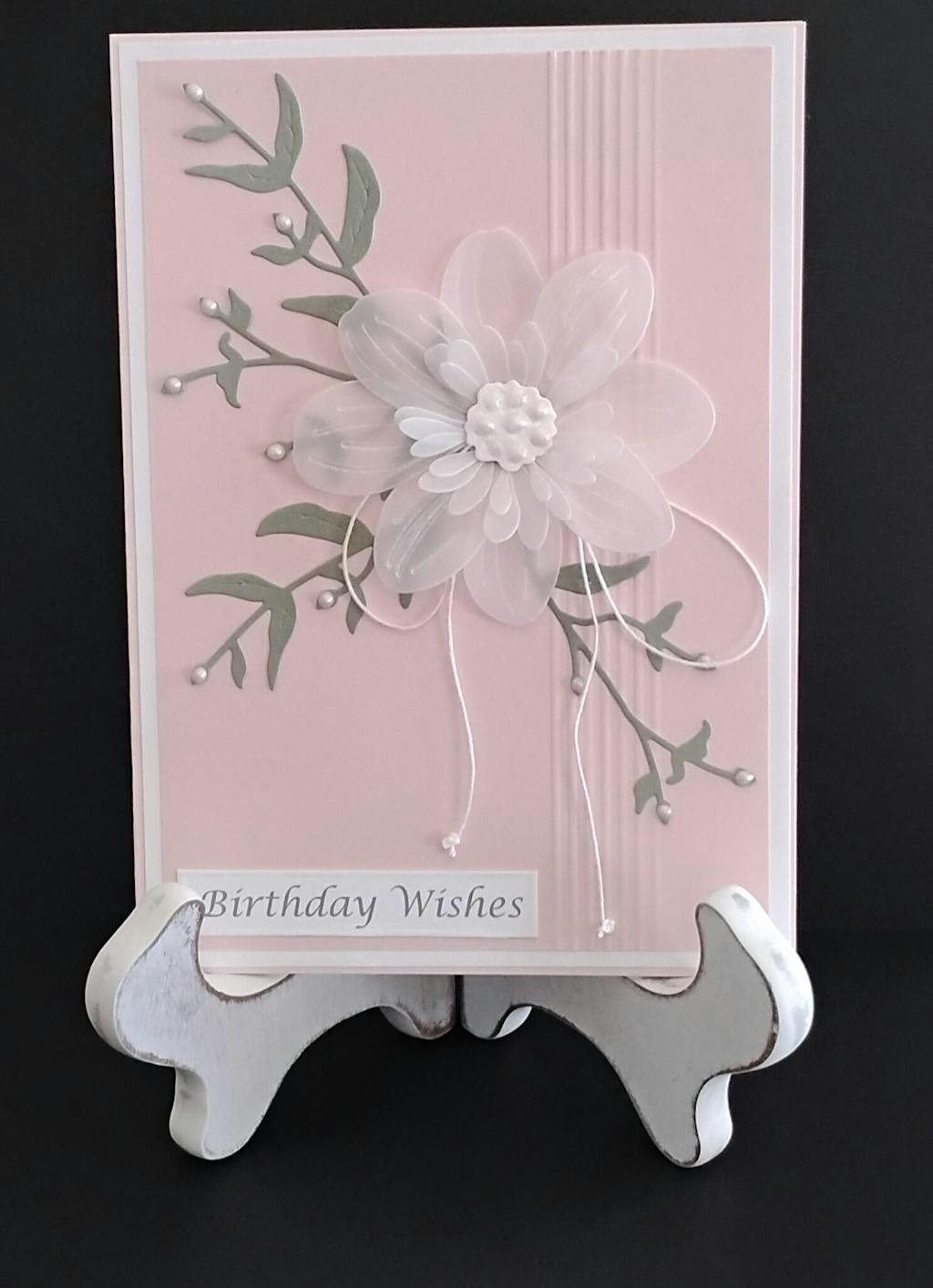 Created this simple 5x7 Birthday card using the floral portion of the Dahlia April Heather key hole die set and was very happy with how beautifully this set cut my vellum paper! Love, love, love the key hole system dies!