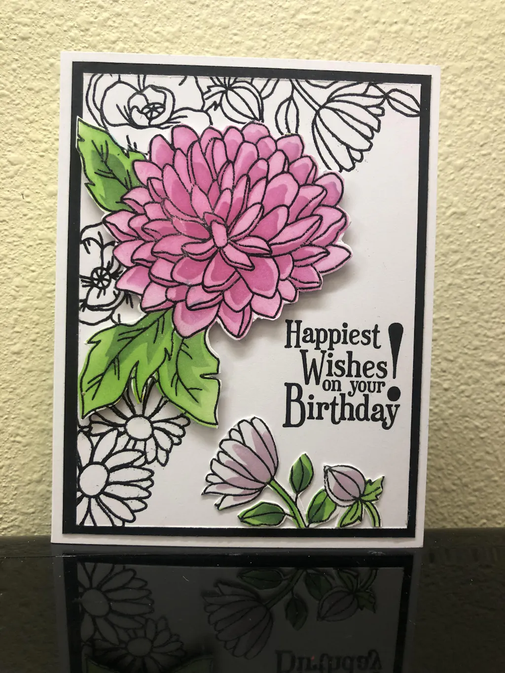 I have to say I was a little disappointed with this kit. I thought "Where is the WOW?" Maybe I was spoiled by the Fragrant Florals kit in which all parts of that kit worked with each other. In this kit the EF is really separate from the rest of the kit. The stencils take some work to use the first time. (I ended up stamping both stamps on card stock & then, when I stenciled them, I numbered both the stencil & corresponding part of the stamp. I'll keep this with the set to reference in the future.) The sentiments seem a bit small for the size of the stamps, but I like the fonts and will use them with the EF & on other cards. After working with this kit I'm finding ways to give it a bit of wow-factor. I like fussy-cutting and giving some dimension. The dies make it easy to add dimension & an off-set edge for some emphasis to the stamps. Another quality kit from Altenew.