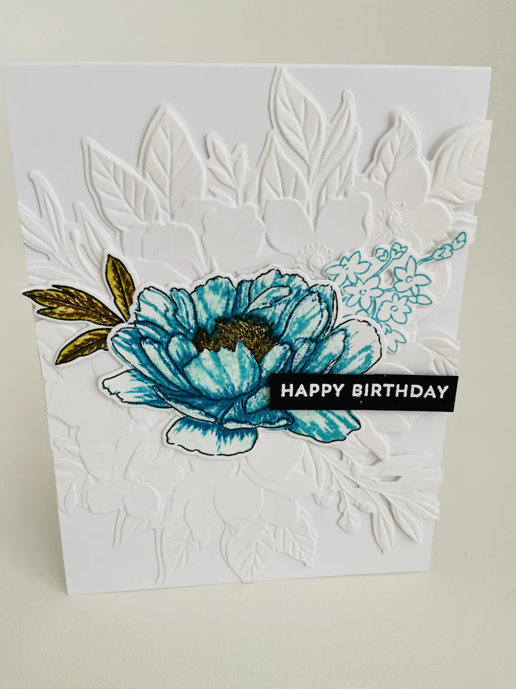 Inspired by Tenia Nelson, I found that the die and the embossing folder in the kit allows me to make a beautiful and delicate background for card making! It turns out that the entire kit ( stamp, stencil, die and embossing folder) is useful and versatile! I made a birthday card for myself and was so pleased with the result!