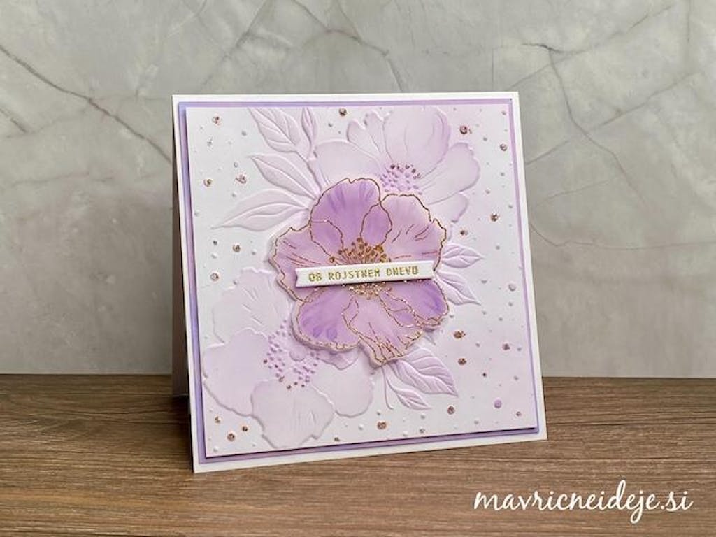 Love how this set compliments but gives flexibility since the leaves are separate. Open blooms makes it fast and simple to add color with the stencils or freeform. And my heart loves the texture the embossing folder adds. Adore this set
