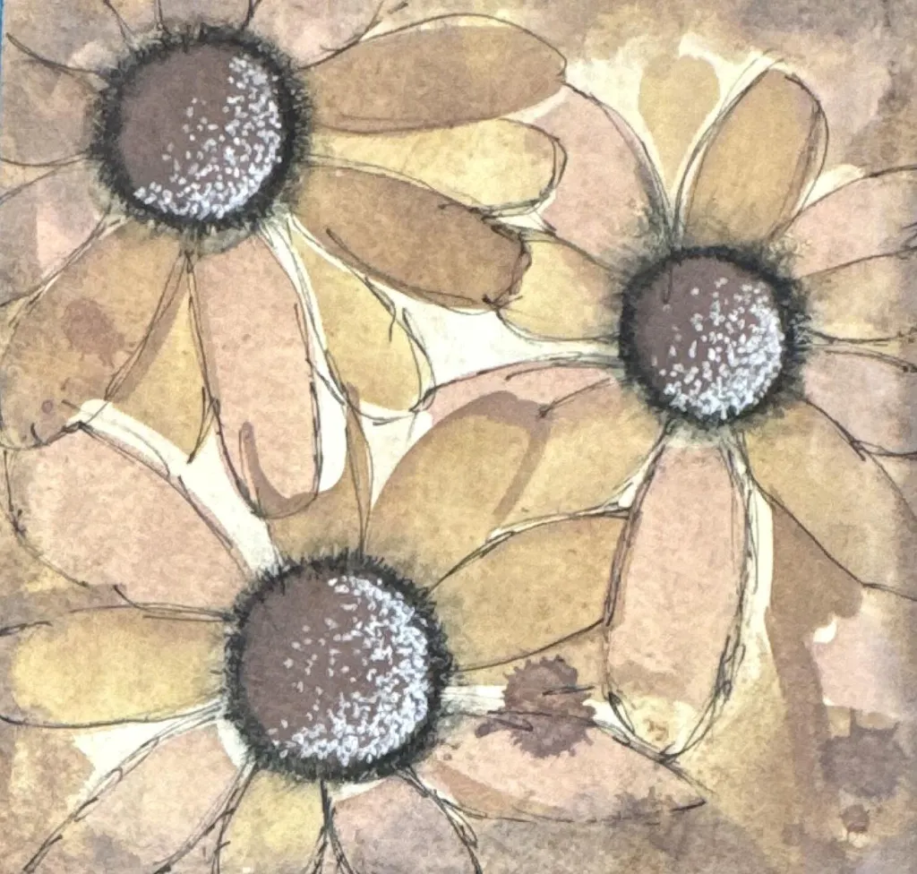 Really nice stencils set. Used Distress Oxides to stamp this. Doodled over petals with a fine top marker. Posca pen used to add white dots.