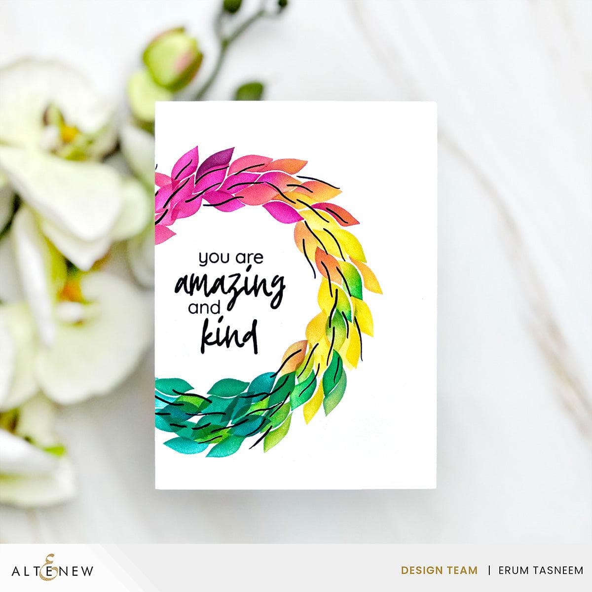 Use Altenew's Stampwheel to help you align and stamp the vein layer from the stamp set. Easy peasy!