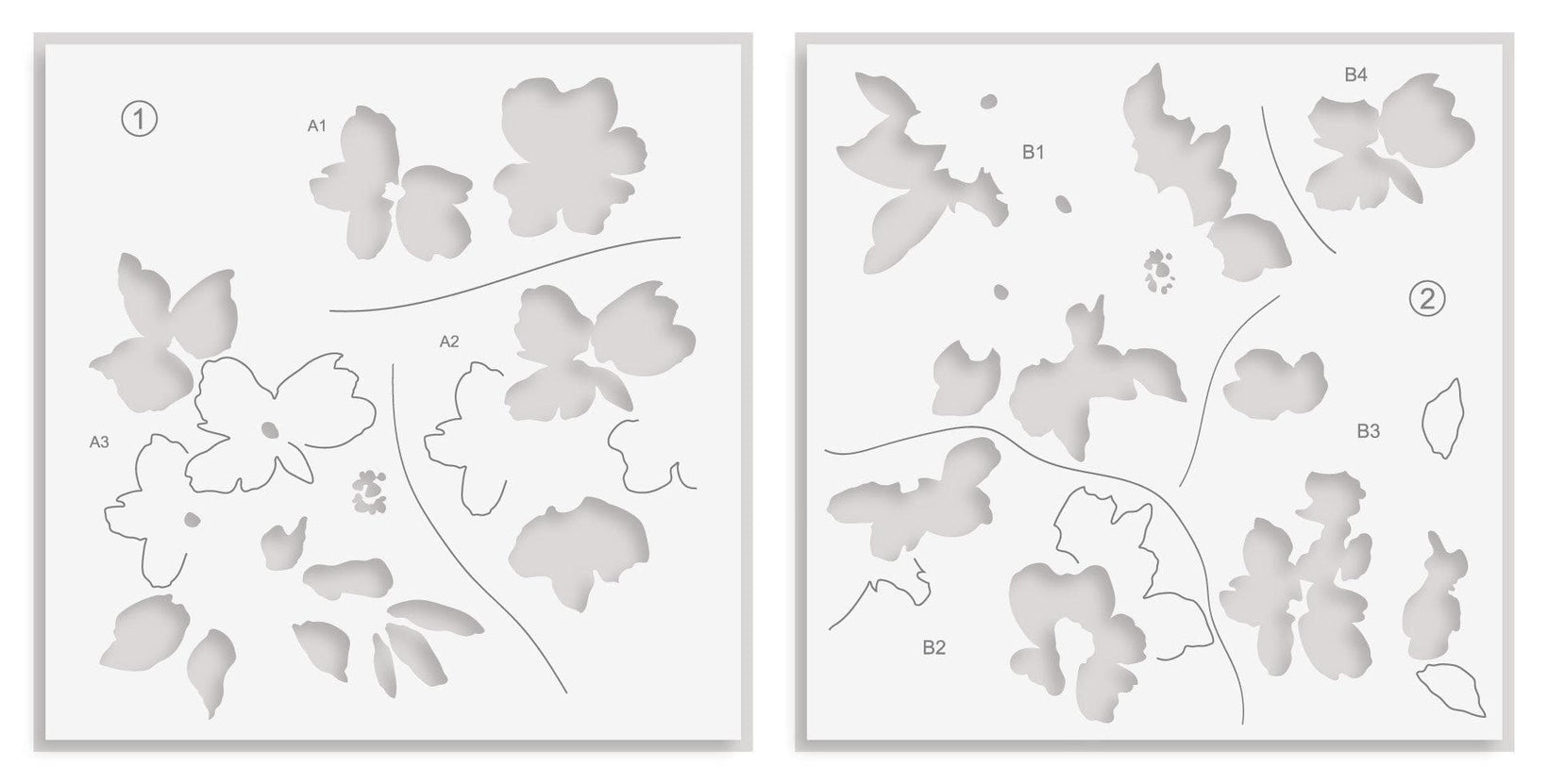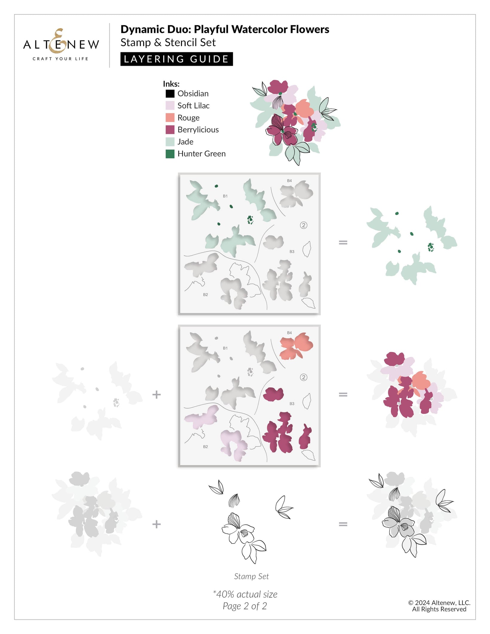 The Dynamic Duo:  Playful Watercolor Flowers Stencil Set was designed to infuse vibrant color into images from the matching stamp set. These stencils create a watercolor effect, adding artistic charm to your projects effortlessly.