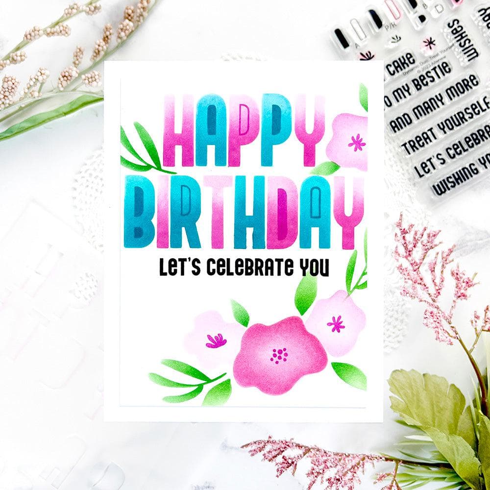 Sentiments: This set includes nine heartwarming birthday sentiments: eat cake ▪ to my bestie ▪ and many more ▪ treat yourself ▪ let's celebrate you ▪ wishing you the best ▪ wishes ▪ it's your day ▪ !