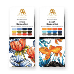 This is a bundle of Mystic Garden Artist Alcohol Markers Set J, Beach Garden Artist Alcohol Markers Set K, and Mystic & Beach Garden Marker Topper Label Set.