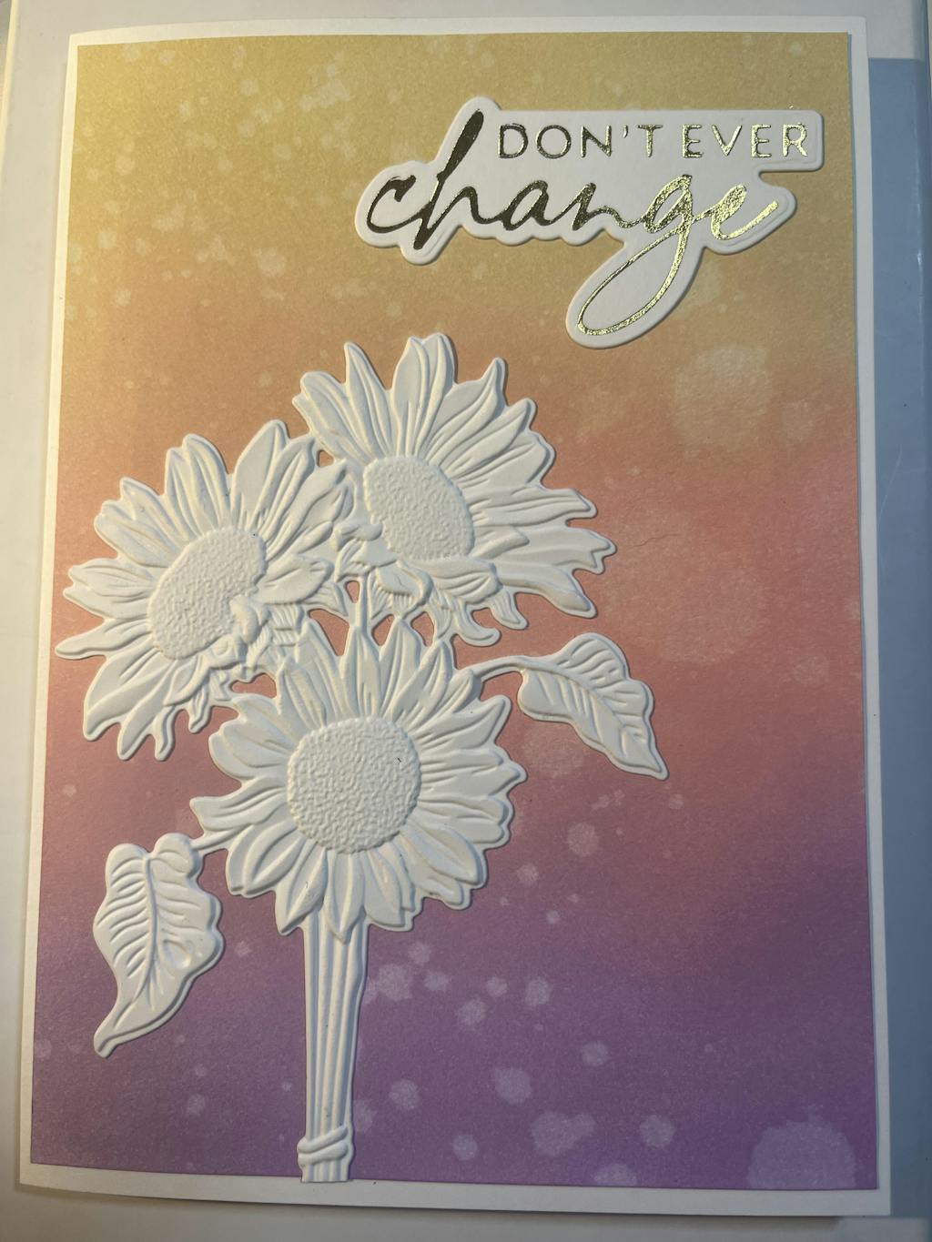 Hot Foil Plate Dimensions:  You matter to me - 3.2" x 1.2", Thank you for everything - 3.9" x 1.3" , love you infinitely - 3.0" x 1.3", don't ever change - 2.7" x 1.4", just be you - 1.6" x 1.4"
