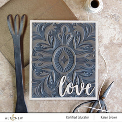 If you’re looking to bring a graphic yet elegant feel to your projects, this luxurious, dramatic, and exciting 3D embossing folder will help you do just that! The Fantasy Emblem 3D Embossing Folder resembles a beautiful tile that has several motifs, flourishes, and more. It will add a bit of elegance and texture to your projects in a modern, yet timeless manner.