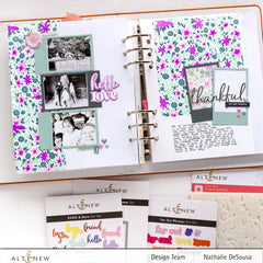 The featured font is a total throwback with swirls and other decorative details. Each word or phrase includes a coordinating die to cut an optional shadow layer. Far out!