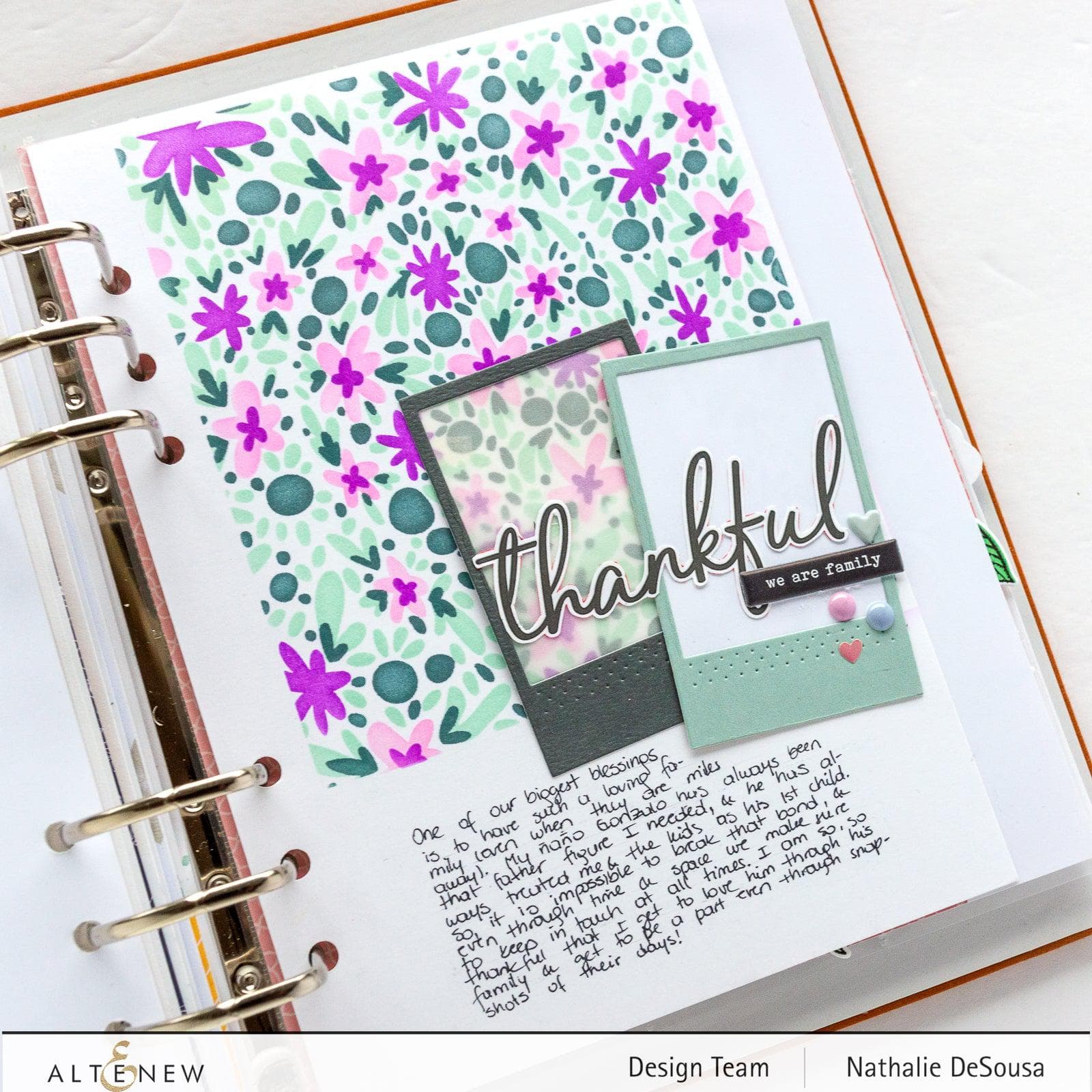 Perfect Pairings: Vintage Vibes Stamp Set ▪ Illusion Spiral Stencil ▪ Glitter Gradient Cardstock Set - Forest Canopy