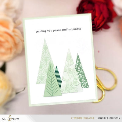 Put a modern spin on festive crafting with these stylish triangles and sentiments, ready to impress in every way. The Festive Triangles Press Plate Set features 3 triangle sizes, each with mix-and-match pattern layers, blending florals and geometrics. Whether you're designing modern looks or crafting for special occasions, the possibilities are endless! Pair your unique patterns with 13 versatile greetings to complete your projects with the perfect touch. Let your imagination shine with every press!