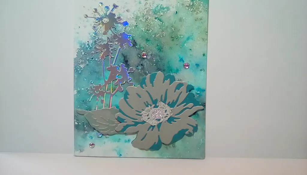 This has been a favorite die set for me. Cuts easily and layers simply. Created with flat metallic cardstock made for beautiful cards.