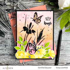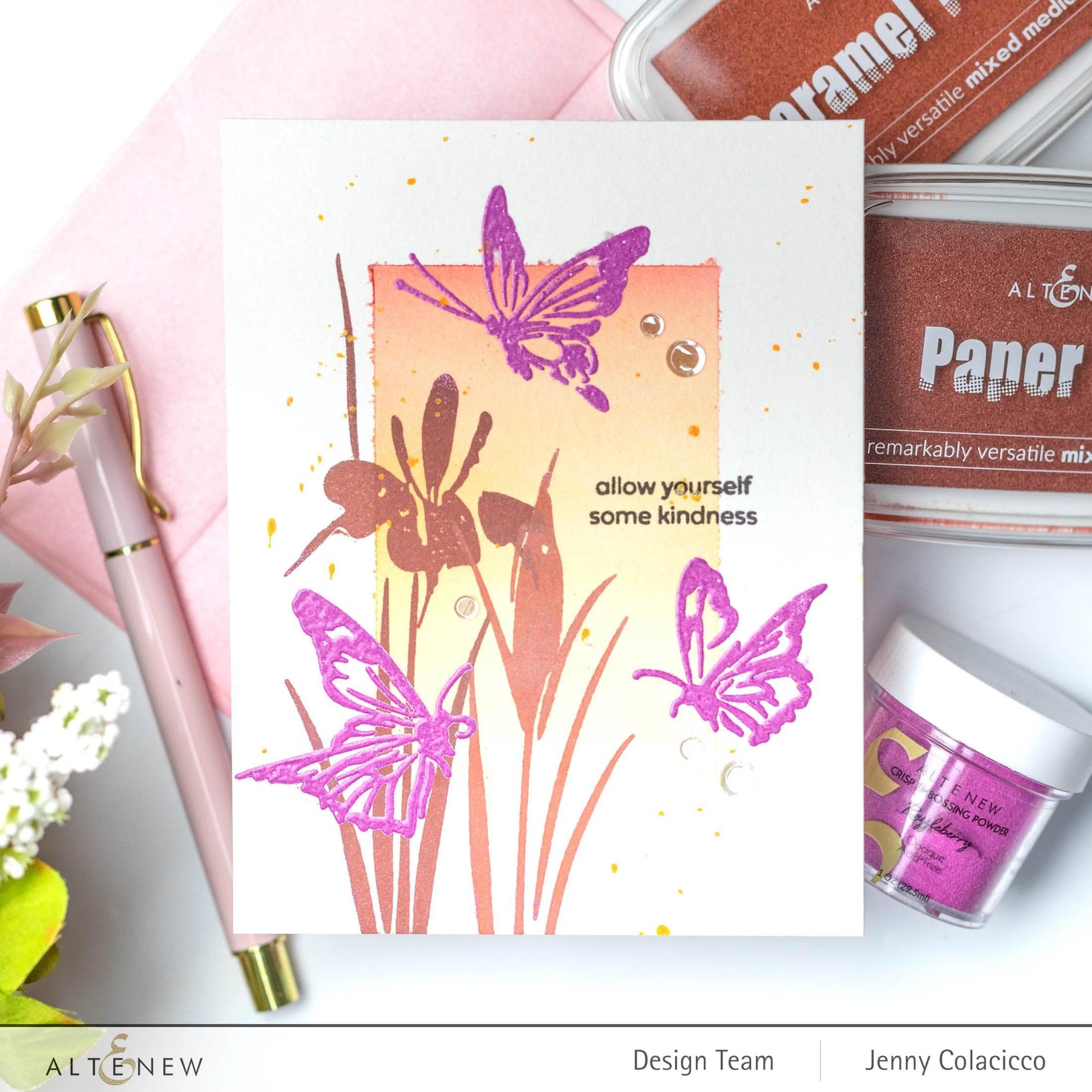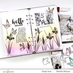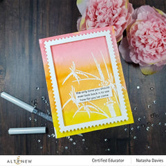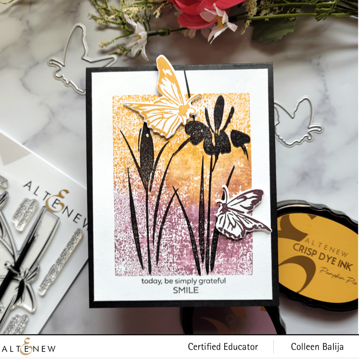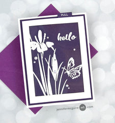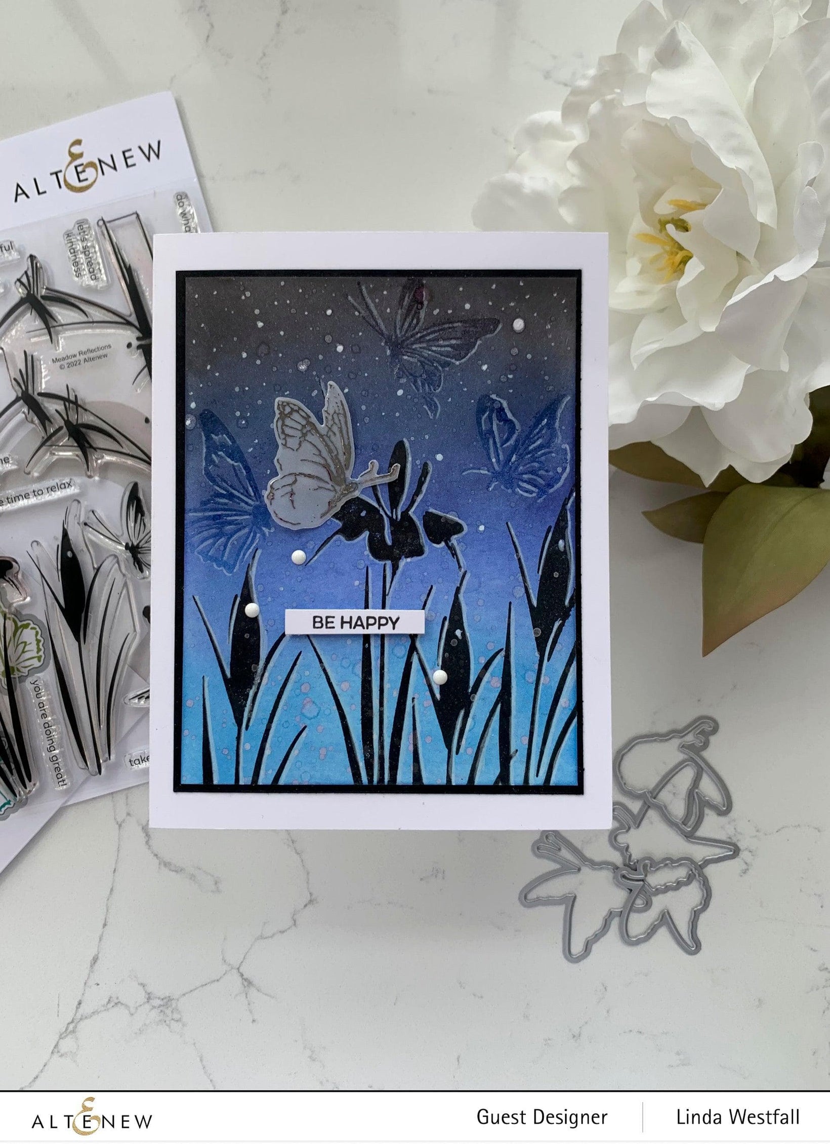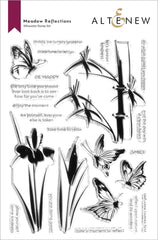 The 6" x 8" Meadow Reflections Stamp Set features silhouettes of iris stalks, a bamboo tree, and four butterflies. Drawn with free-flowing brushstrokes, the stamps will help you create beautiful artwork that will exude elegance and classical charm. Stamp the accompanying motivational sentiments to create peaceful, reflective projects that will inspire your loved ones.