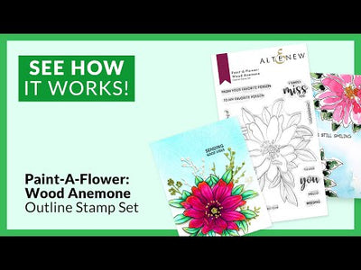 Paint-A-Flower: Wood Anemone Outline Stamp Set: This stamp set showcases a gorgeous double-flowered wood anemone surrounded by lush greenery, along with eleven heartwarming sentiments to complete the project of your choice.