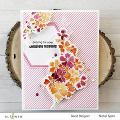 This background stamp set features a large diagonally striped stamp - perfect for simple and elegant backgrounds. It can be paired with any of our floral, nature, and geometric stamp designs. The cluster of painted dots included is great for adding some lovely background textures. This will definitely be your new go-to background stamp!