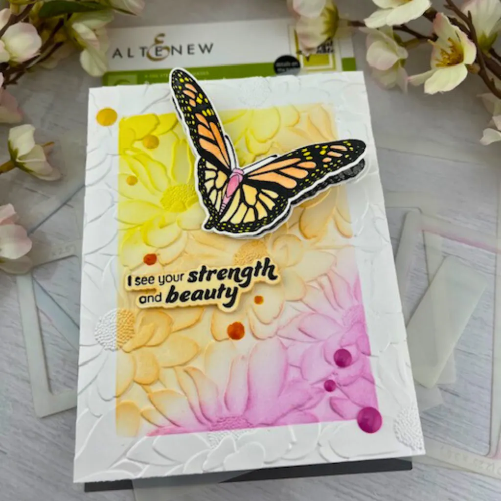 Altenew stencils look beautiful when blended with our Crisp and Fresh Dye Inks and our line of Ink Sprays, or you can add texture with Altenew Embossing Paste.