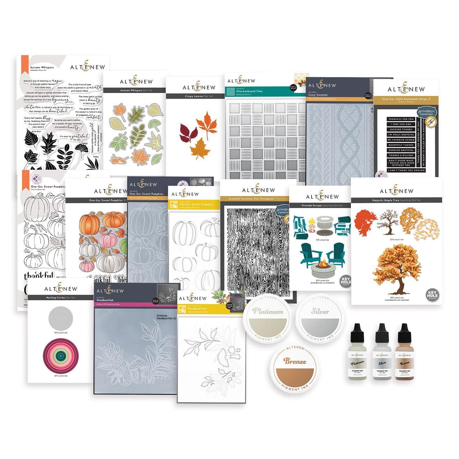 This release honors the beauty of change through rich color palettes, cozy embossing, and thoughtfully designed dies and stamps. Build serene seasonal scenes with the Fireside Escape Die Set and Majestic Maple Tree Layering Die Set, both perfect for storytelling cards or autumn-inspired layouts. Add organic texture with the Woodland Path 3D Embossing Folder, or celebrate harvest season with the Craft Your Life Project Kit: Sweet Harvest, which includes stamps, dies, stencils, and a coordinating embossing folder. Floral lovers will delight in Build-A-Garden: Fanciful Pansies and Craft-A-Flower: Asters, each offering signature Altenew layering for bold, dimensional blooms. For smaller-scale nature accents, explore Creative Cuts: Fresh Pears and the charming Mini Delight: Garden Friend. Also introducing Metallic Pigment Inks in Platinum, Silver, and Bronze—perfect for adding luxurious shimmer to autumn projects. Whether crafting cards, layouts, or mixed media, this release brings soul, season, and sophistication together in every detail.